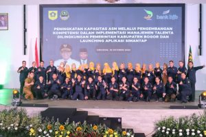 Cibinong: Selasa, 18 Oktober 2022 Pukul : 09.00 WIB – selesai bertempat di Auditorium Sekretariat Daerah Kabupaten Bogor, BKPSDM launching Aplikasi Strategi Implementasi Kebijakan Manajemen Talenta Berbasis Model Komposit Kinerja Pegawai (SIMANTAP) dan Sistem Informasi Pengembangan Kompetensi ASN Masa Depan (SI ABANG TAMPAN). Dengan SIMANTAP dan Si ABANG TAMPAN, BKPSDM membangun kompetensi Aparatur Sipil Negara (ASN) di Kabupaten Bogor guna mencetak ASN yang profesional dan berdaya saing serta calon pemimpin yang kompeten. Acara launching SIMANTAP dihadiri pula oleh Asisten Deputi Perancangan Jabatan, Perencanaan dan Pengembangan SDM Aparatur Kemenpan RB Bapak Aba Subagja, S.Sos., M.AP, Sekretaris Daerah Provinsi Jawa Barat Bapak Dr. Ir. Setiawan Wangsaatmaja, Dipl., S.E., M.Eng, Kepala BPSDM Provinsi Jawa Barat Bapak Dr. Hery Antasari., ST., M.Dev.Plg, Widyaiswara BPSDM Provinsi Jawa Barat H. Wisandana Sanudi, M.Si, Kepala PUPR Provinsi Jabar, Plt. Bupati Bogor Bapak Iwan Setiawan, Sekretaris Daerah Kabupaten Bogor Bapak Drs. Burhanudin, M.Si, Asisten Pemerintahan dan Kesra Kabupaten Bogor Bapak Drs. Hadijana, S.Sos., M.Si, Plt. Asisten Administrasi Umum Bapak Sigit Wibowo, S.H., M.Si, Ketua Komisi 1 DPRD Kabupaten Bogor Bapak Usep Supratman, S.H., M.H., Bapak Drs. H. Yayat Supriatna, M.Si selaku Coach Kepala BKPSDM Kabupaten Bogor, para Kepala Perangkat Daerah dan Camat se-Kabupaten Bogor. Acara launching ini juga diikuti secara daring oleh 231 orang ASN di lingkungan Pemerintah Kabupaten Bogor.